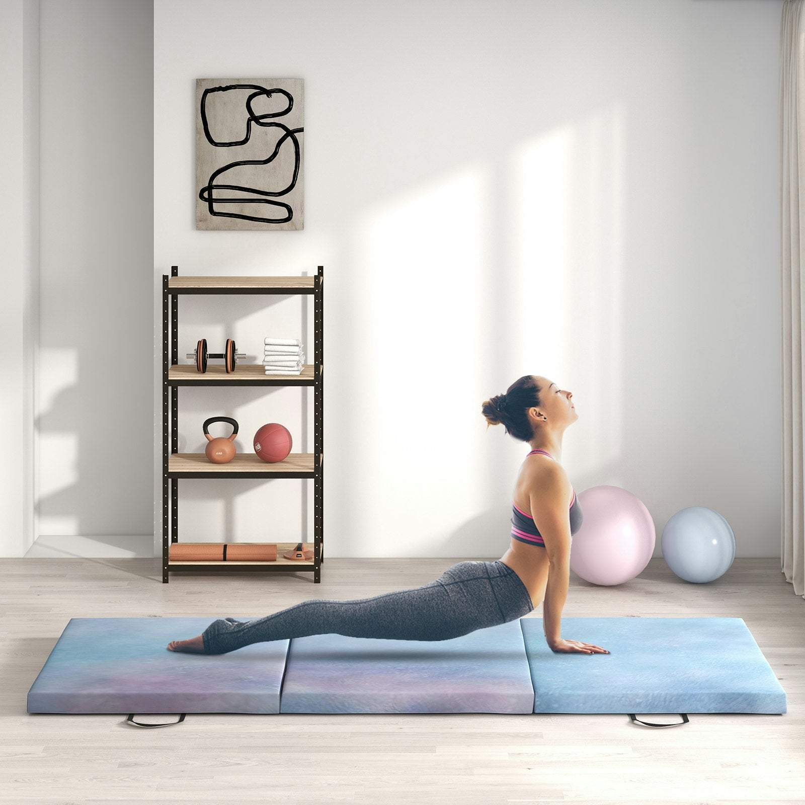 Enhance your workouts with this 6FT tri-fold gymnastics mat, designed for comfort, durability, and portability. Whether you're practicing yoga, gymnastics, stretching, or martial arts, the thick padded surface helps absorb impact and support your movement.